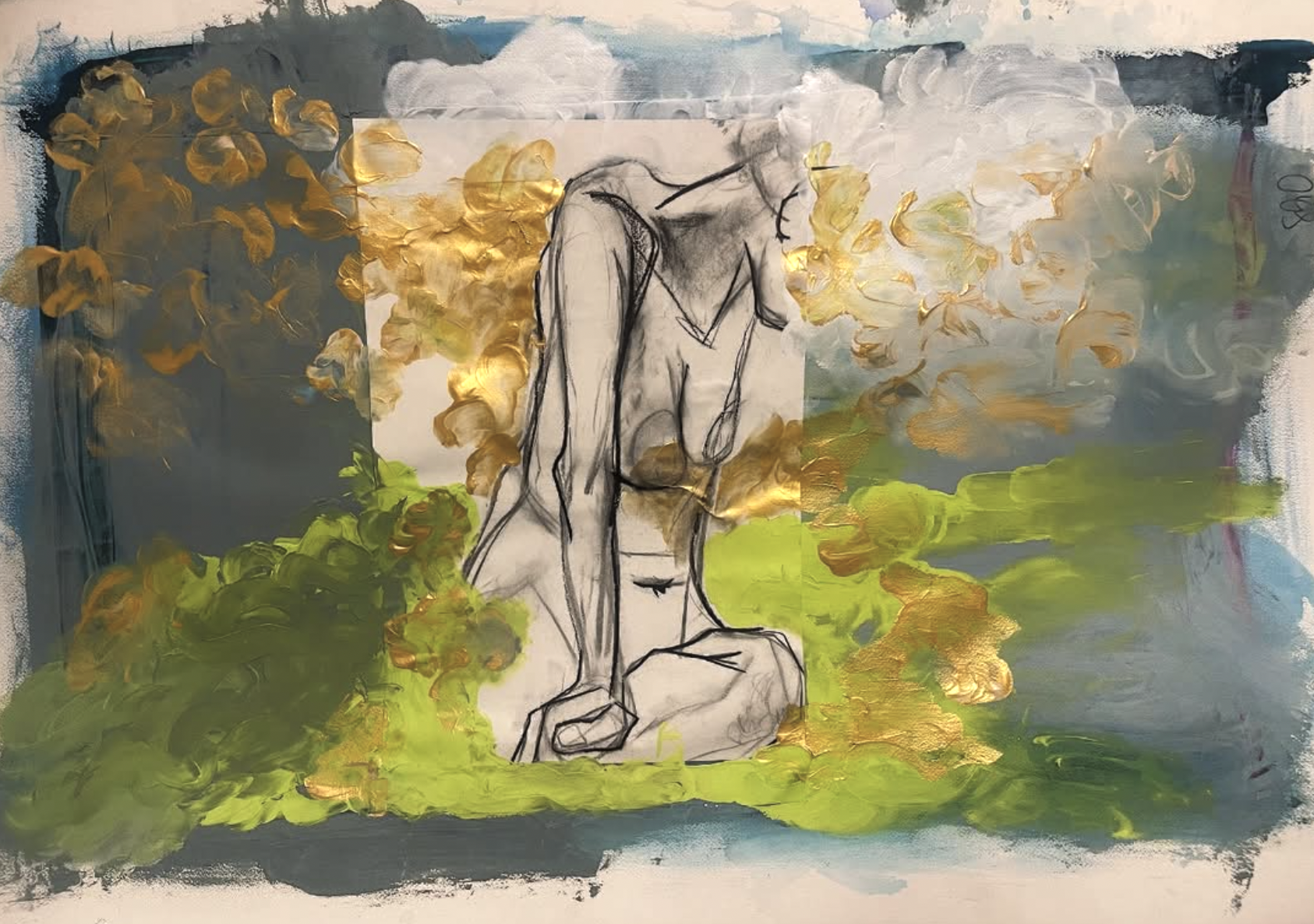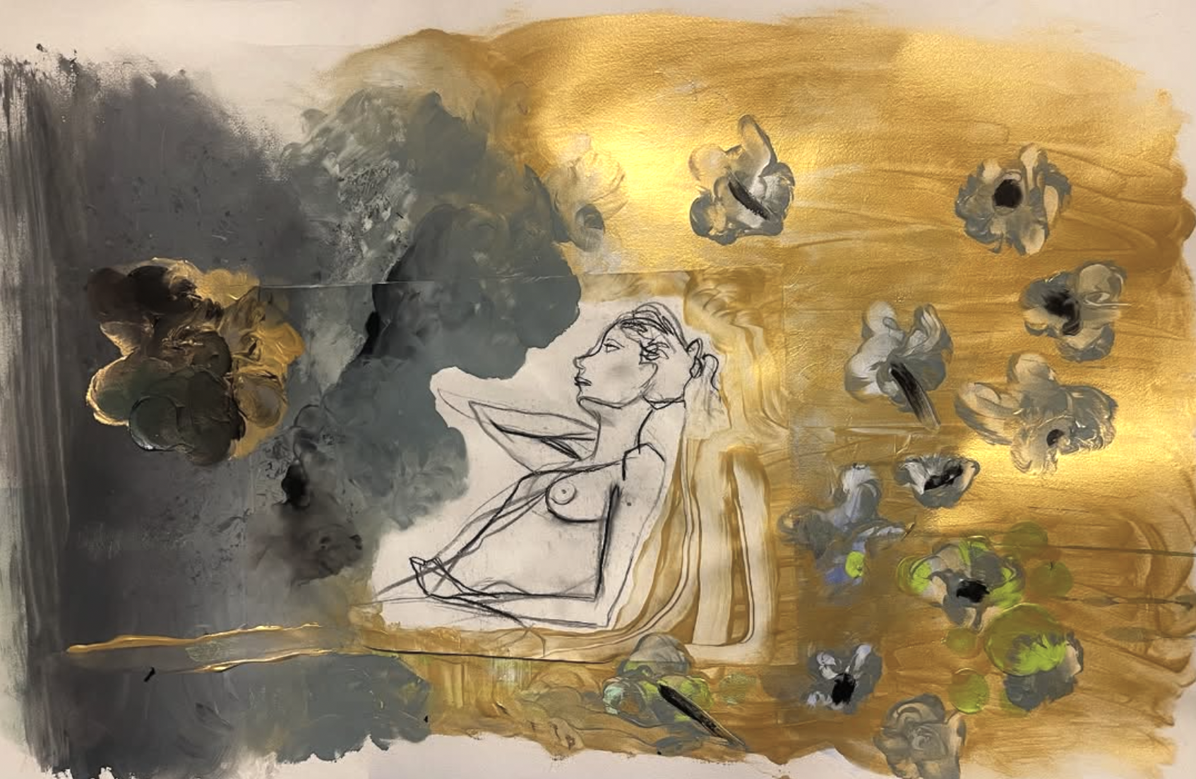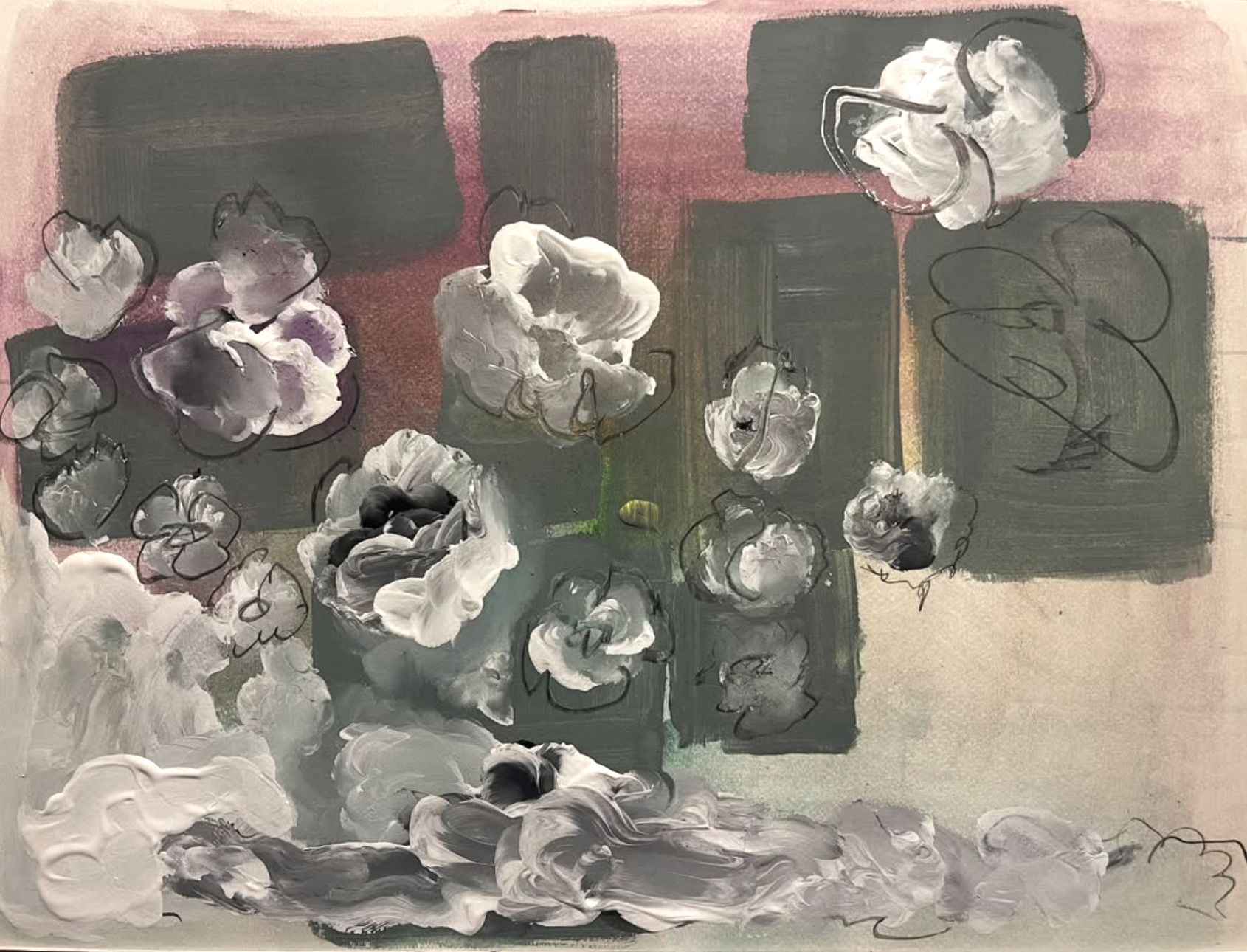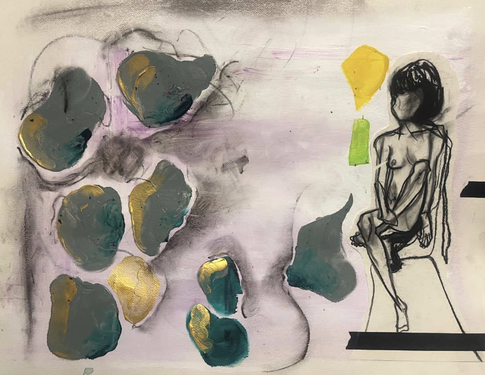 I build in layers using watercolor, acrylic, and charcoal, allowing transparency and saturation to move against one another until the composition settles into something honest. Some marks are intentional, others arrive unexpectedly. I trust both.